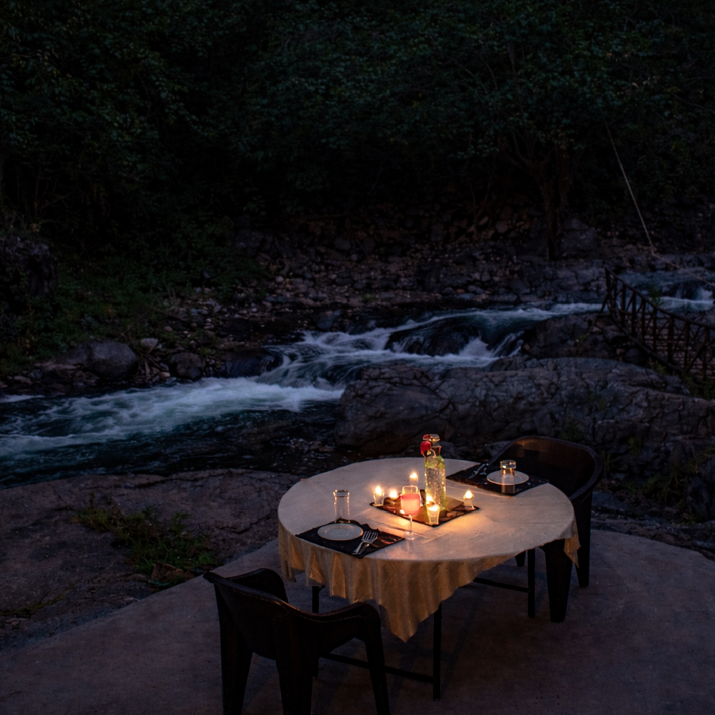 Many couple retreats in Chikmagalur include temple visits to Hornadu or Kalasa, short waterfall stops, and long dinners outdoors. Evenings often end with riverside BBQ setups or simply stargazing from the estate lawn, as the wind breezes by you.